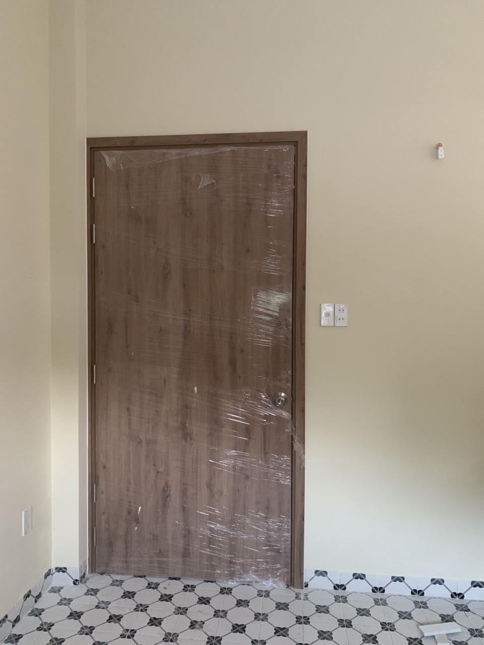 Kích thước: 900*2200 Khung bao: 40*10mm, nẹp chỉ 2 mặt Độ dày cánh: 40mm Bên ngoài là 2 tấm HDF dày 3mm VENEER Sơn hoàn thiện |
