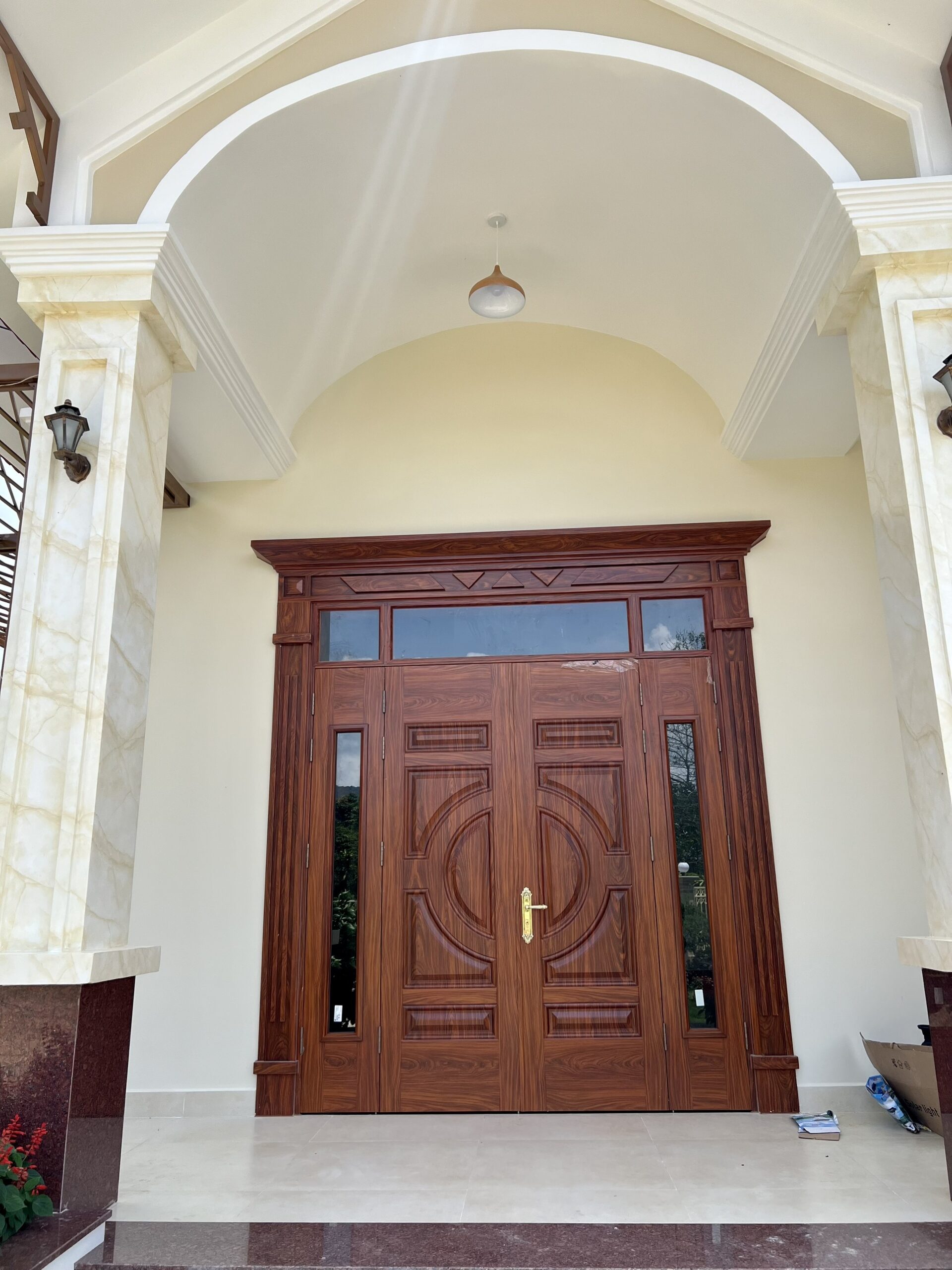 Hoàn thiện cửa thép vân gỗ 4 cánh tại Bình Thuận