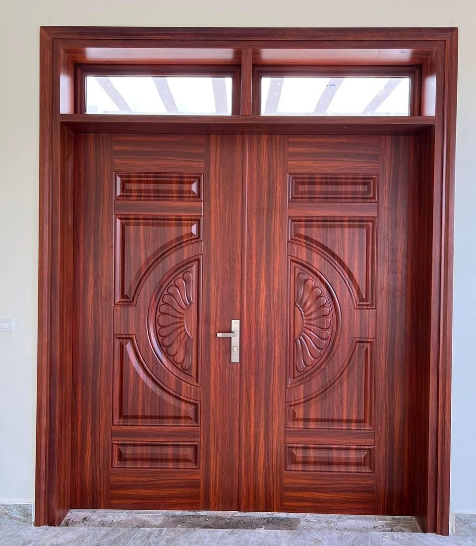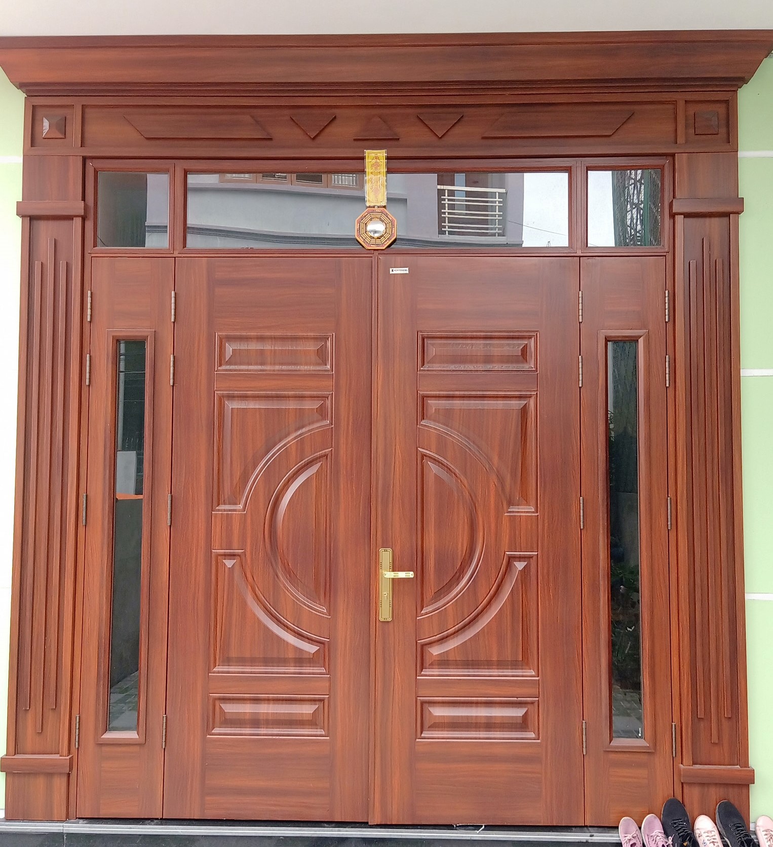 Cửa thép vân gỗ tại Diên Khánh – Mẫu cửa chính chống nắng