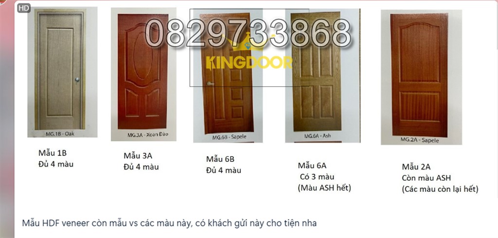 ♥ Màu sắc cửa gỗ công nghiệp thì thường theo màu vân gỗ veneer bề mặt được dán lên. Cánh cửa và khung bao có thể được sơn PU với màu sắc trắng, ghi, nâu socola… Tùy theo nhu cầu của khách hàng để đem lại sự hài hòa với từng ngôi nhà. Giá cũng theo đổi theo màu sắc cửa.