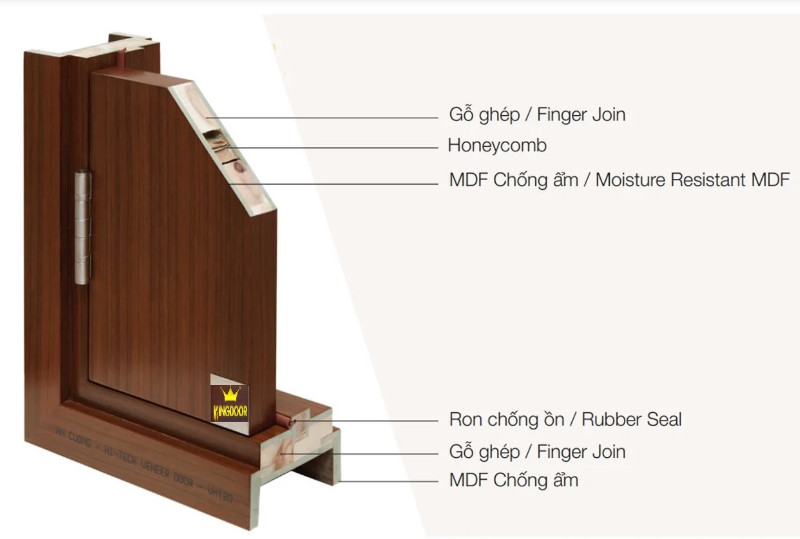 - Lõi cửa là honeycomb có tác dụng chịu lực bề mặt cánh cửa, làm giảm trọng lượng cánh cửa, cách âm.