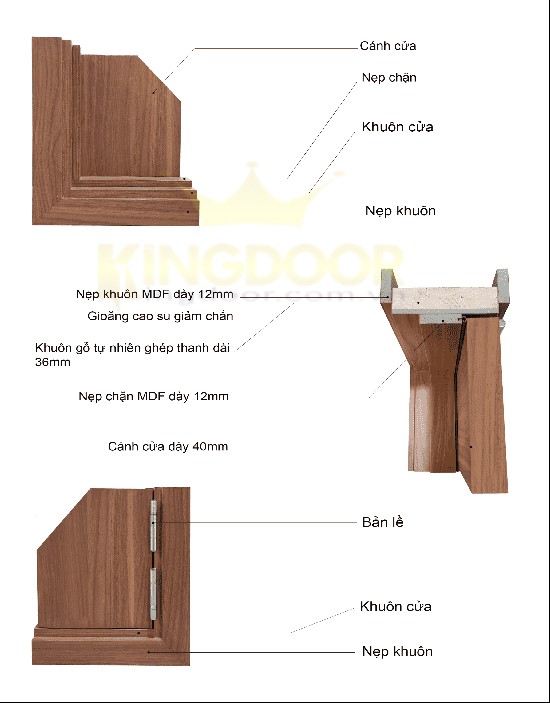 – Khung bao 45 x 110mm; nẹp chỉ 2 mặt 45 x 10mm làm bằng gỗ tự nhiên.