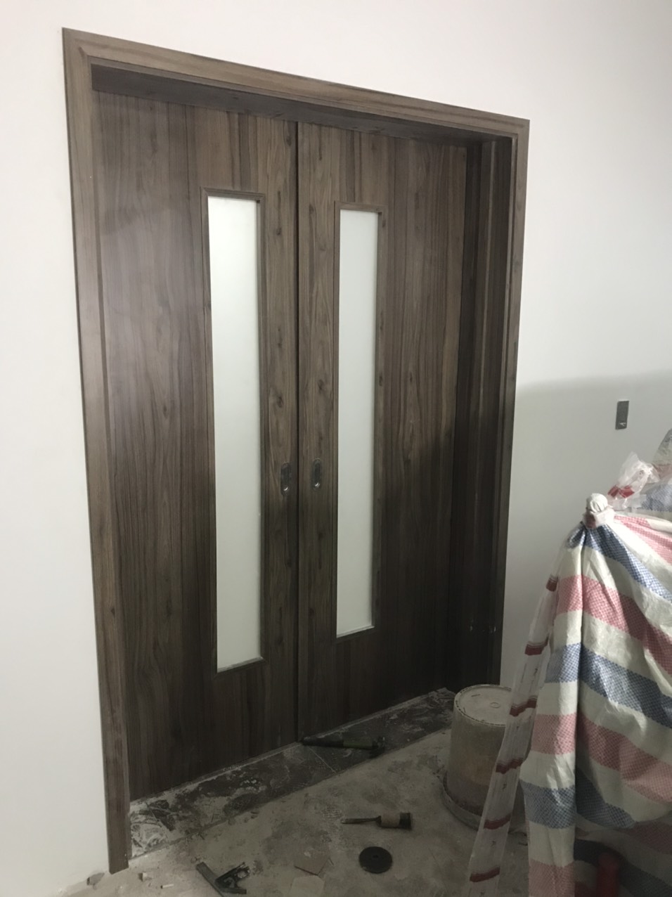 Giá cửa gỗ WBP phủ laminate : 3,000,000/m2 ( gồm : cánh + khung bao).