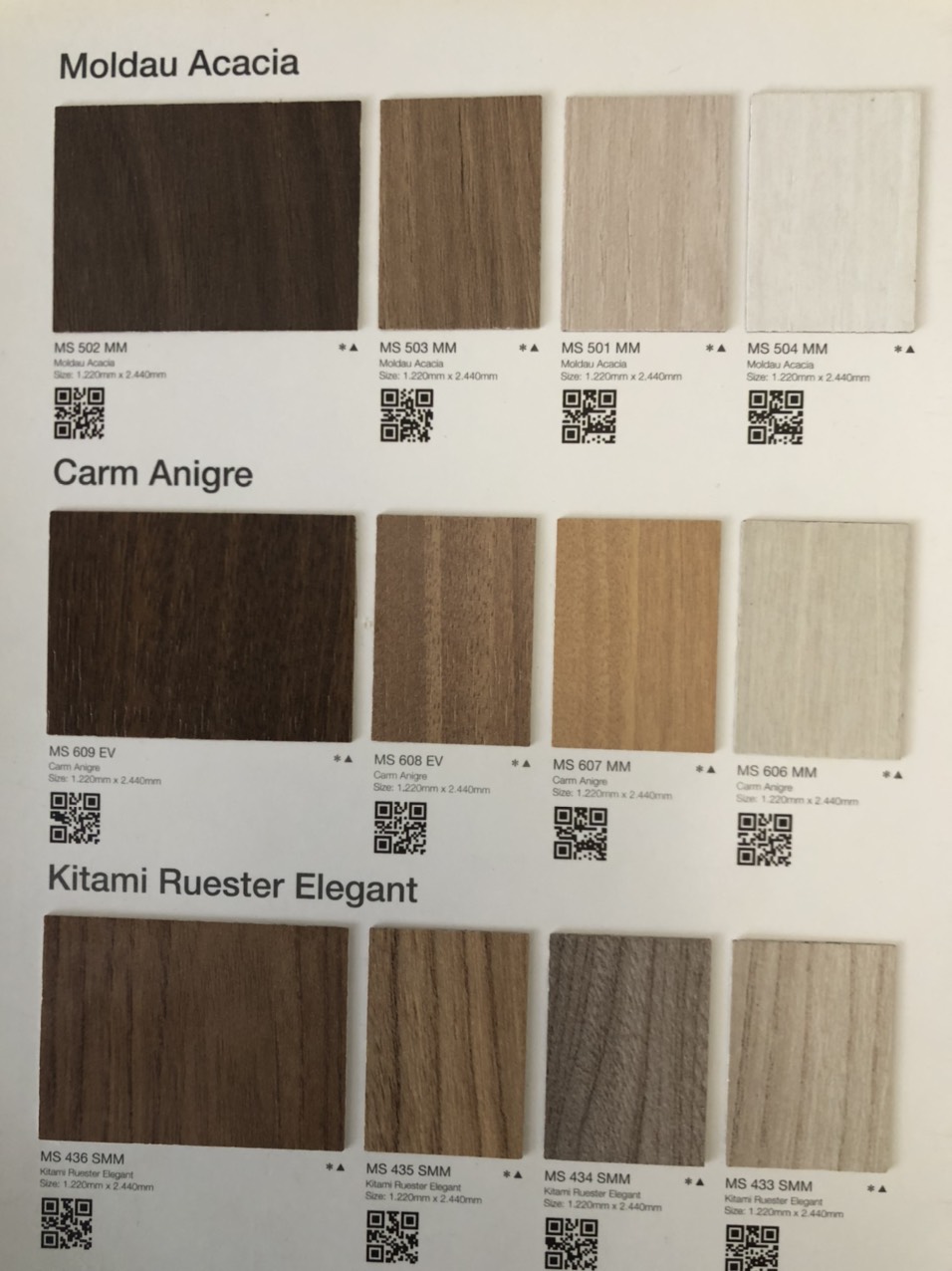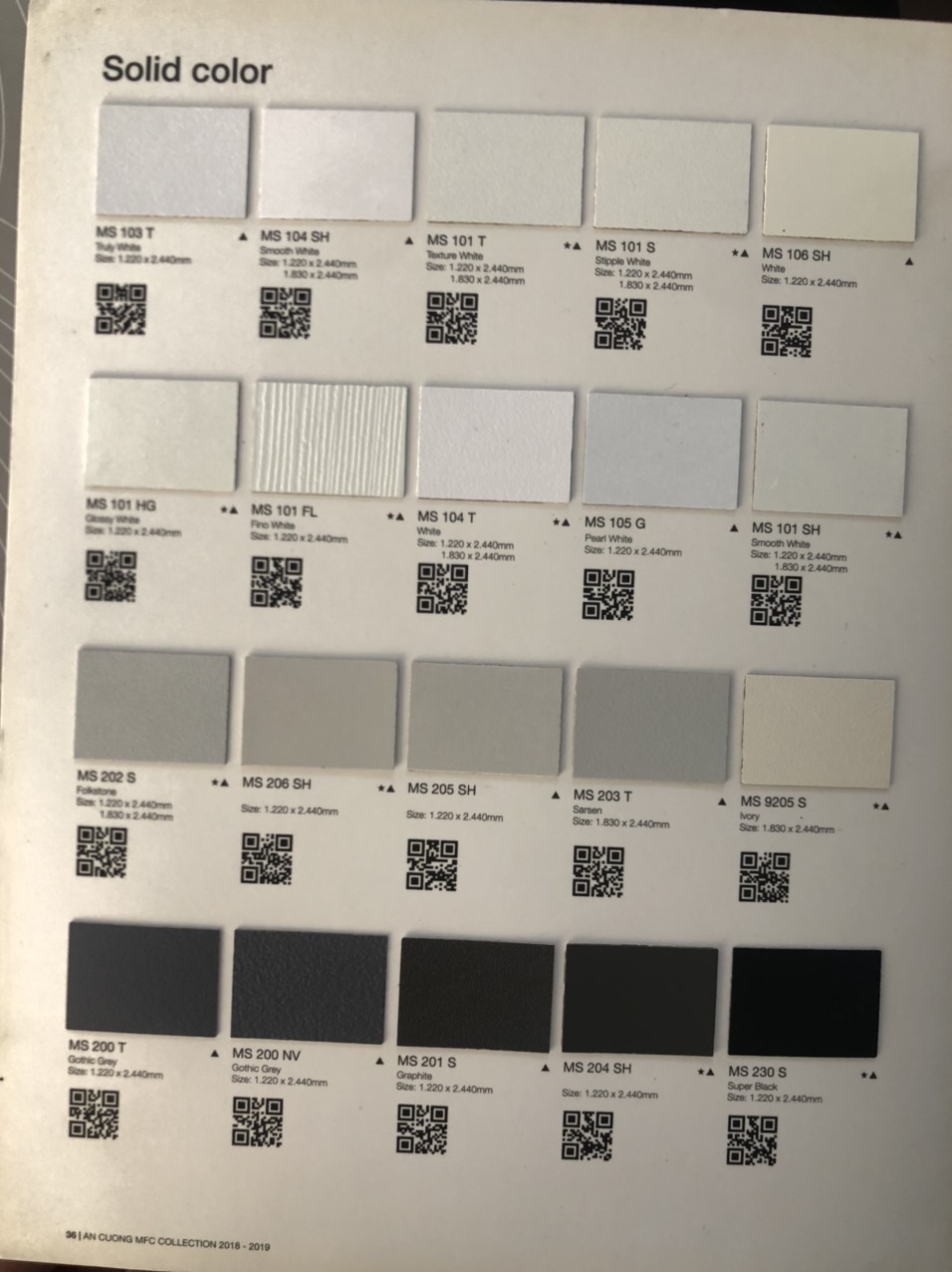 - Màu sắc đa dạng với 300 mã màu từ đơn sắc (như trắng, xám, đen, ghi, vàng,….) cho đến vân gỗ (như tần bì, óc chó, sồi, giáng hương, cẩm, xoan đào, gõ đỏ,…) và một số màu đặc biệt khác như màu xi măng, vân đá, …từ hiện đại đến giả cổ, tất cả đều rất đặc biệt.