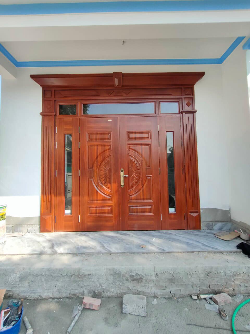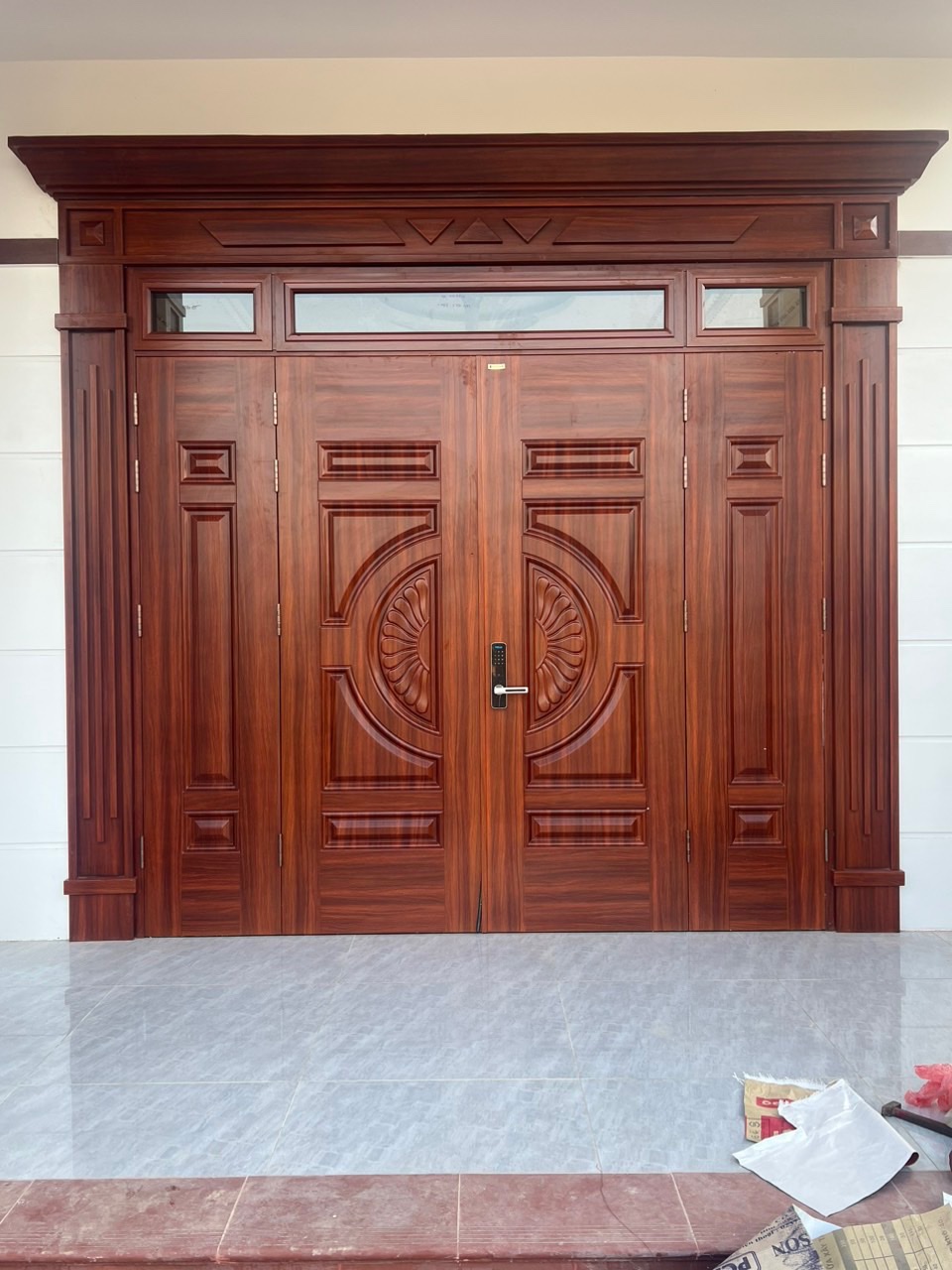 Hình Ảnh thực tế cửa thép vân gỗ 4 cánh tại công trình