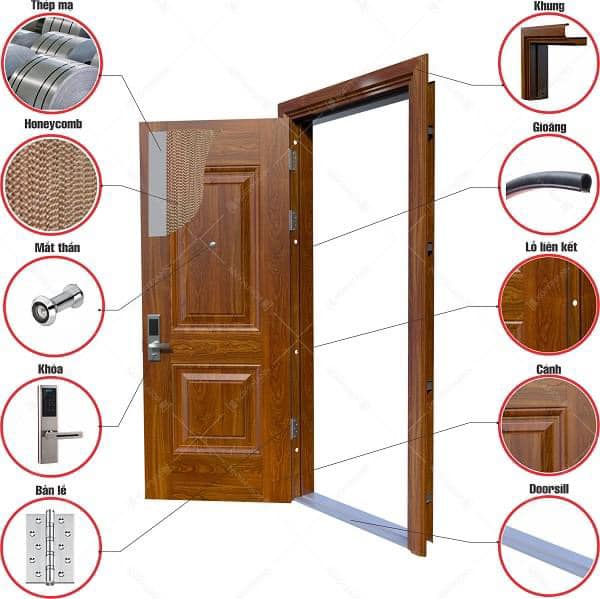 Cấu tạo của cửa thép vân gỗ: