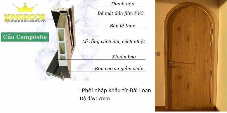 • Cửa nhựa vòm Composite có độ dày cánh 40mm và khuôn mẫu  dày 7mm.