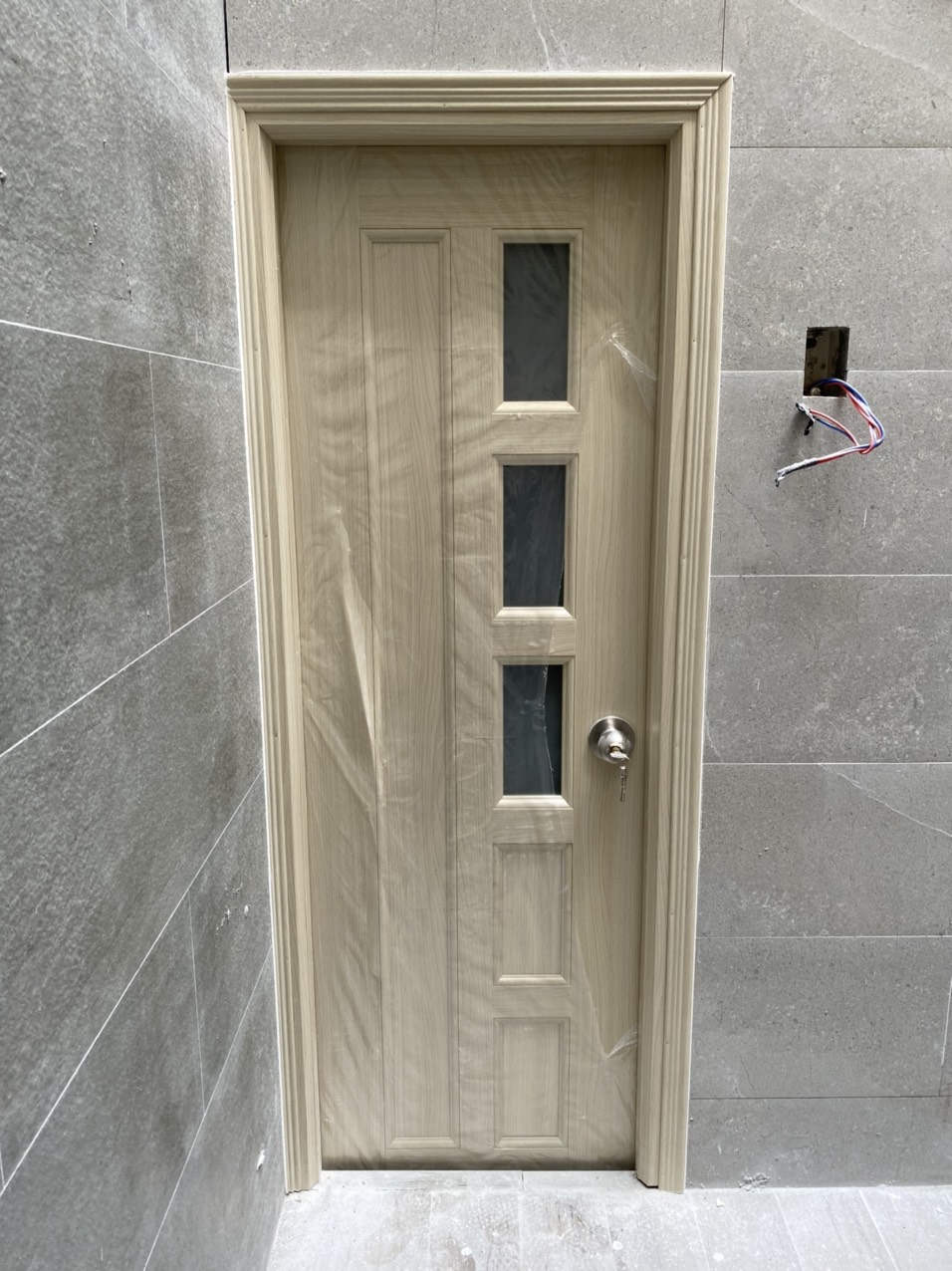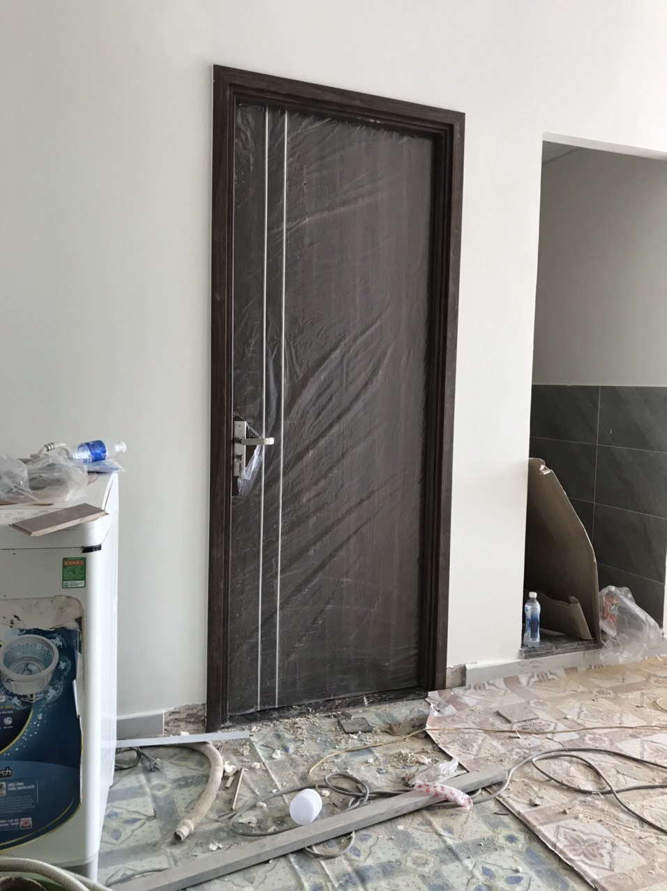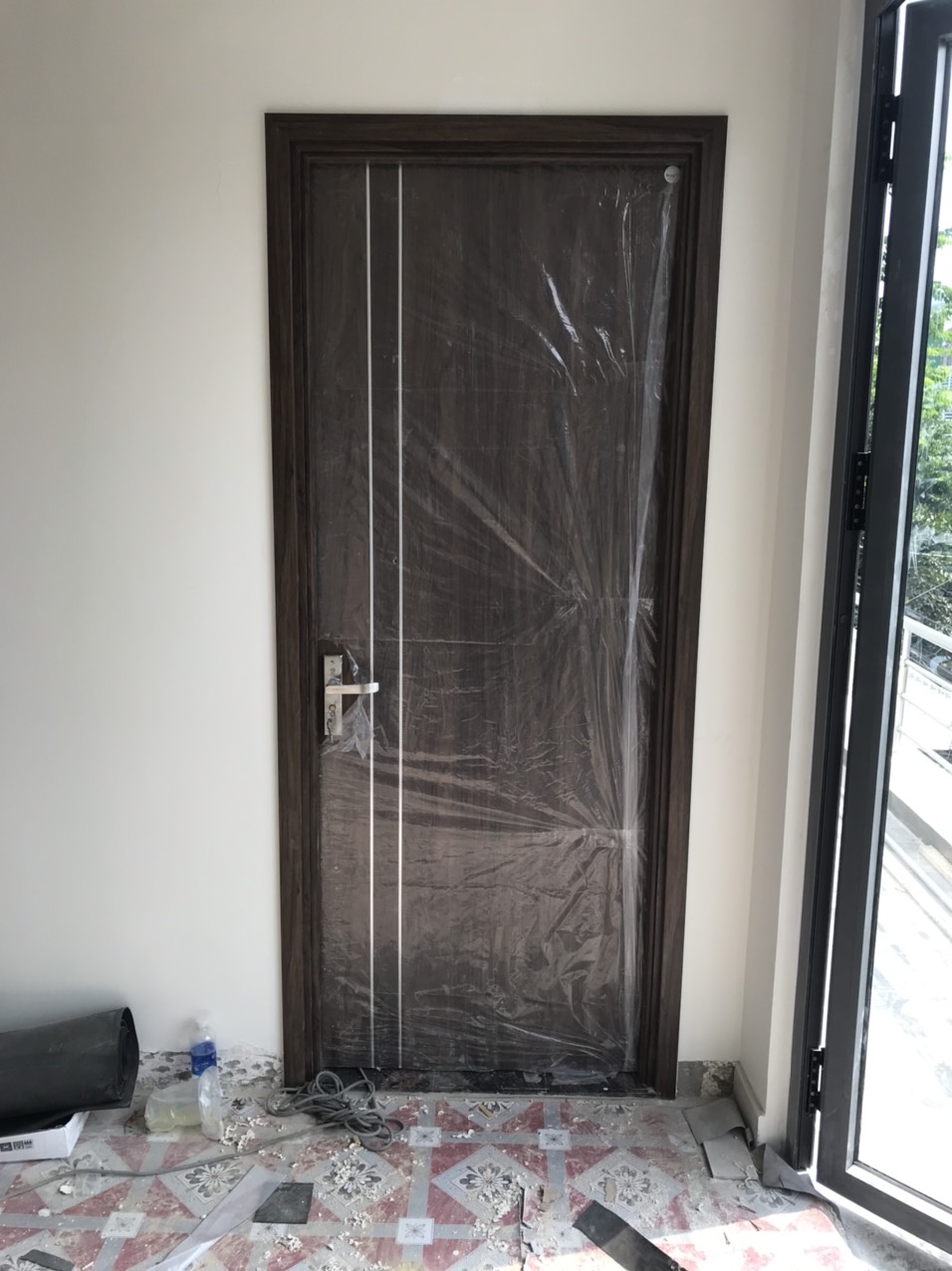 5. Đợi xi măng khô và ổn định sau đó mới tháo bao bì cửa.