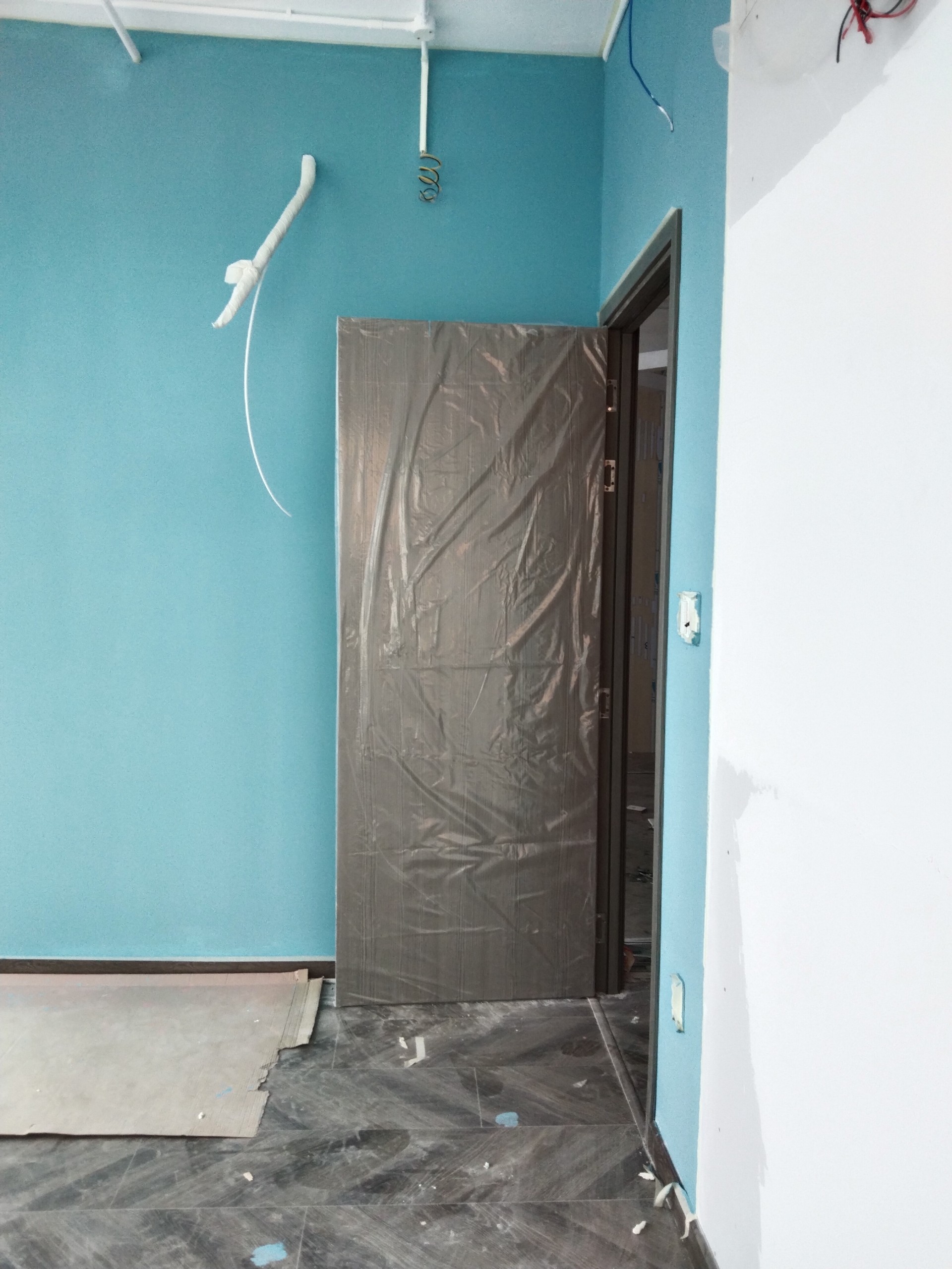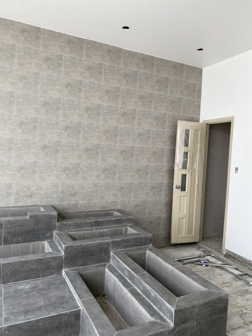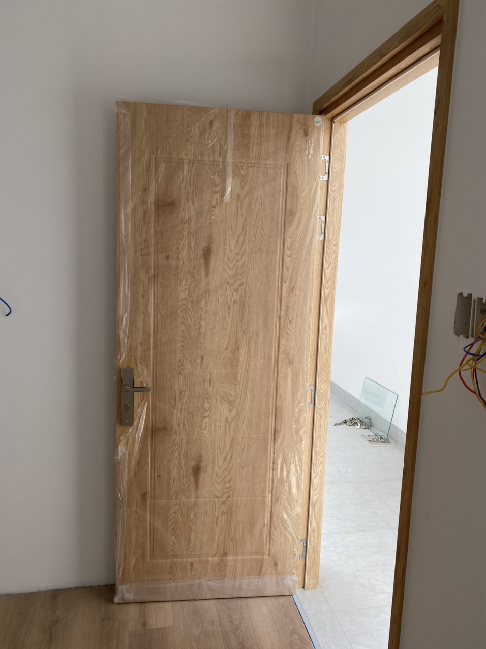 5. Đợi xi măng khô và ổn định sau đó mới tháo bao bì cửa.