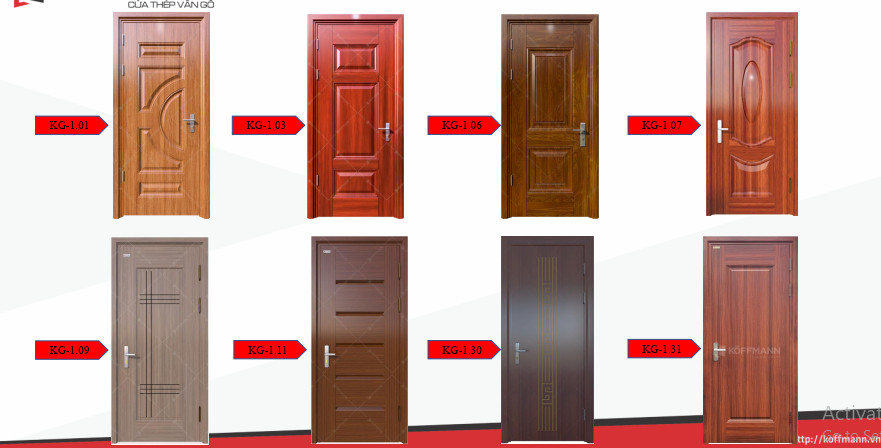 Cử thép vân gỗ gồm 34 màu vân gỗ (giả gỗ) và màu sơn. Rất dễ dùng và phù hợp với nhiều kiến trúc khác nhau. Mỗi màu sắc sẽ đi cùng với những vân gỗ riêng, tạo nên nhiều sự lựa chọn cho khách hàng.Bên cạnh đó, cửa thép vân sở hữu hơn 50 mẫu thiết kế chạy pano họa tiết trên bề mặt tạo nên sự đa dạng mẫu mã, kiểu dáng.