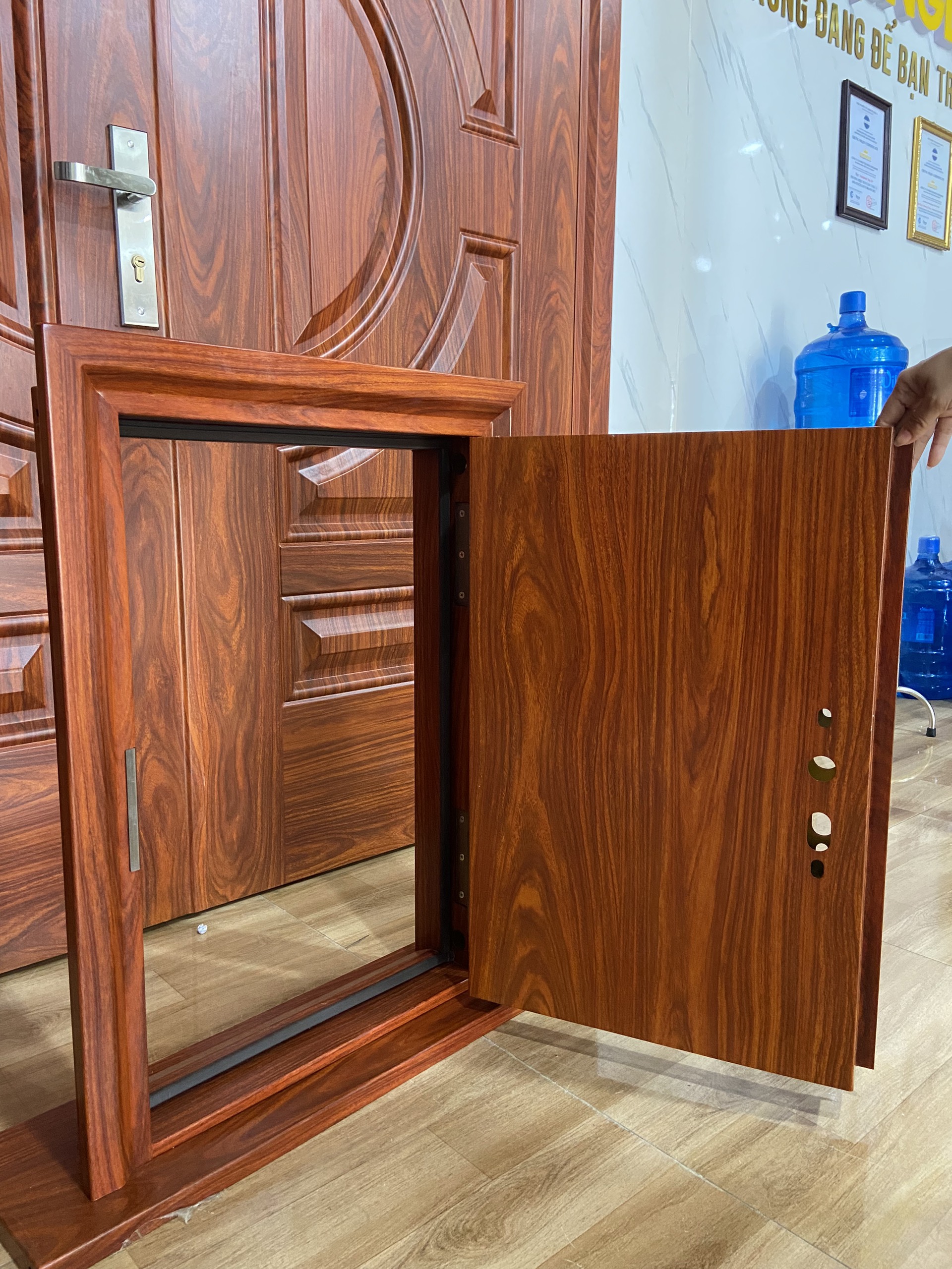 - Người tiêu dùng đánh giá về cửa thép vân gỗ hoạt động nhẹ nhàng, êm ái